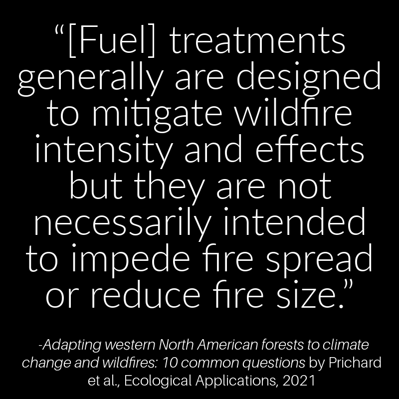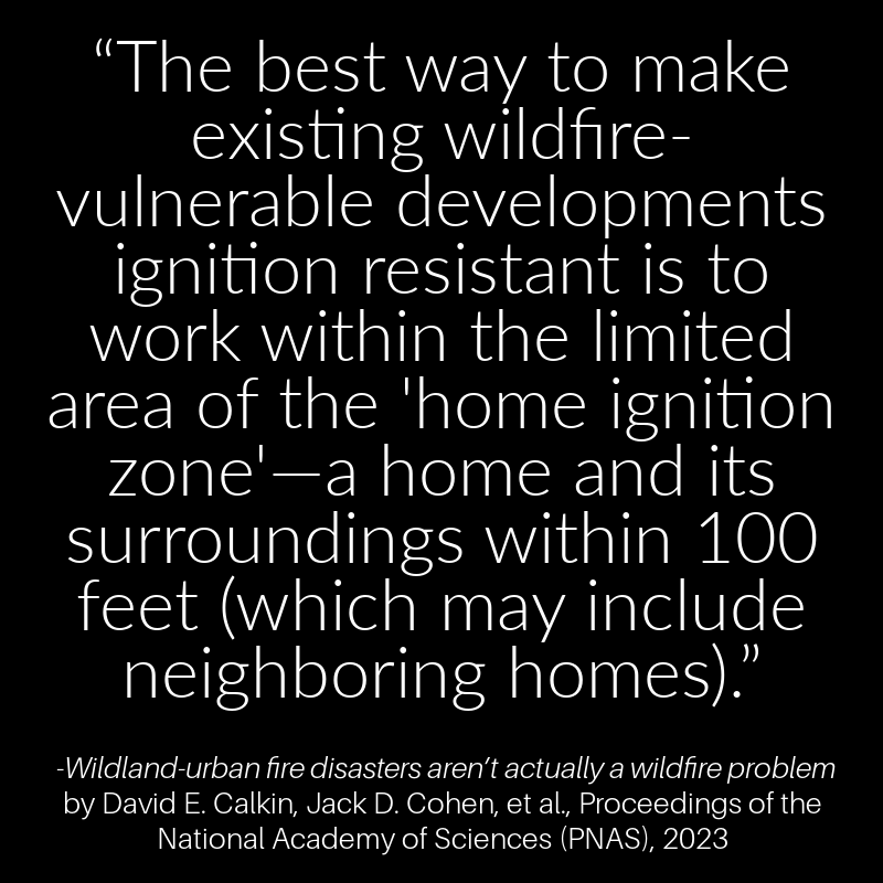 Other studies were cited pointing out how the scientific consensus for protecting communities from wildfire is home hardening and defensible space pruning up to 100 feet around homes.
